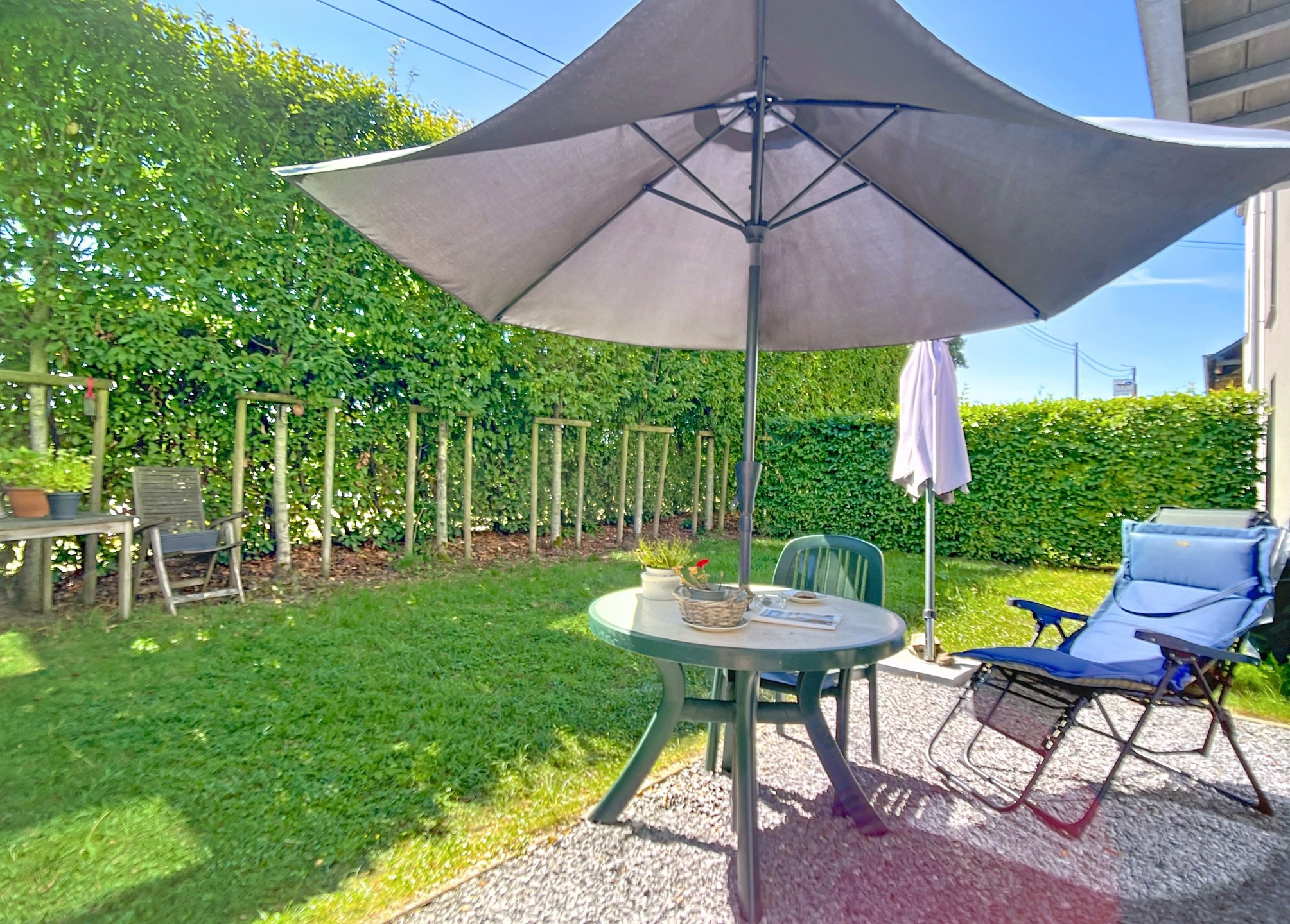 Extérieur : Un emplacement de parking, jardin et terrasse privative.