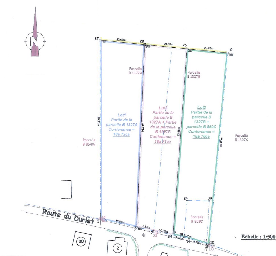 Chaque terrain dispose d’une largeur à front de voirie 18,85m.